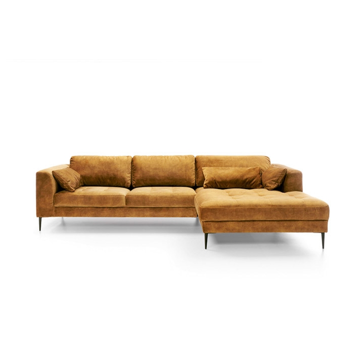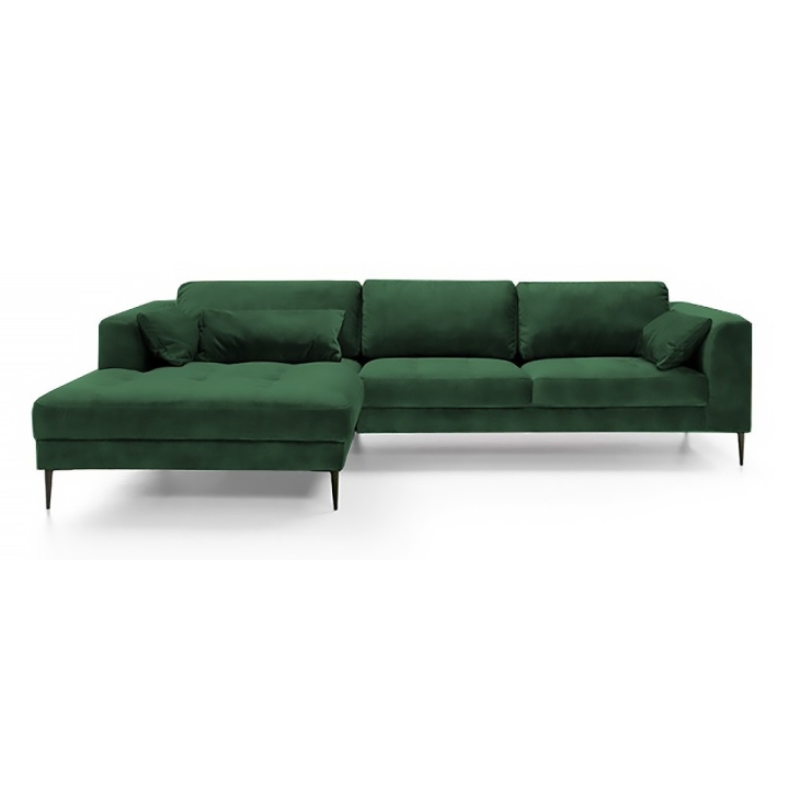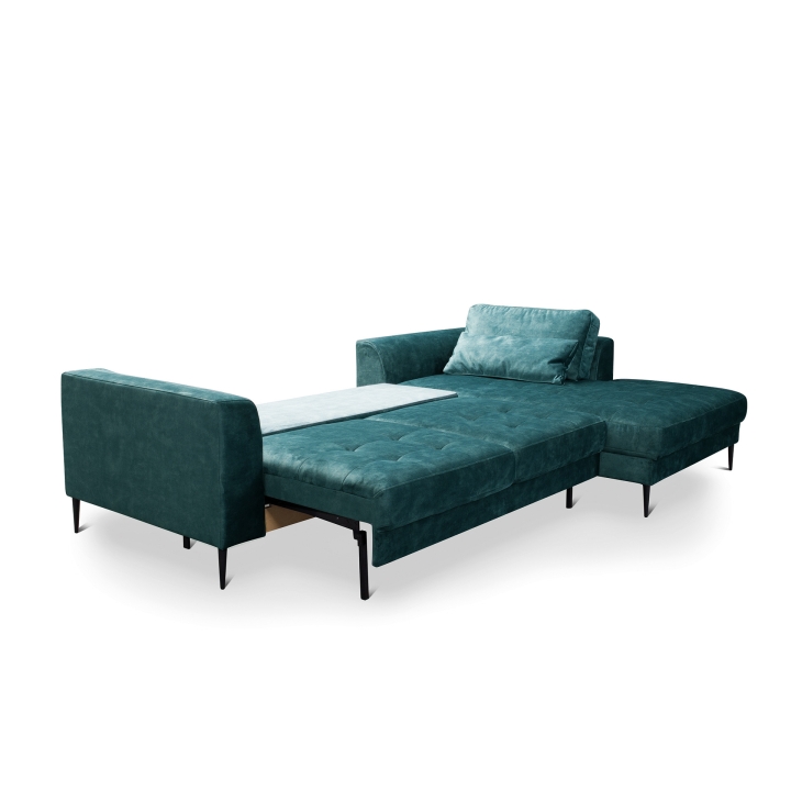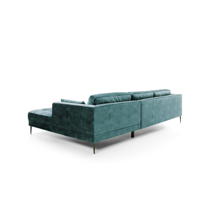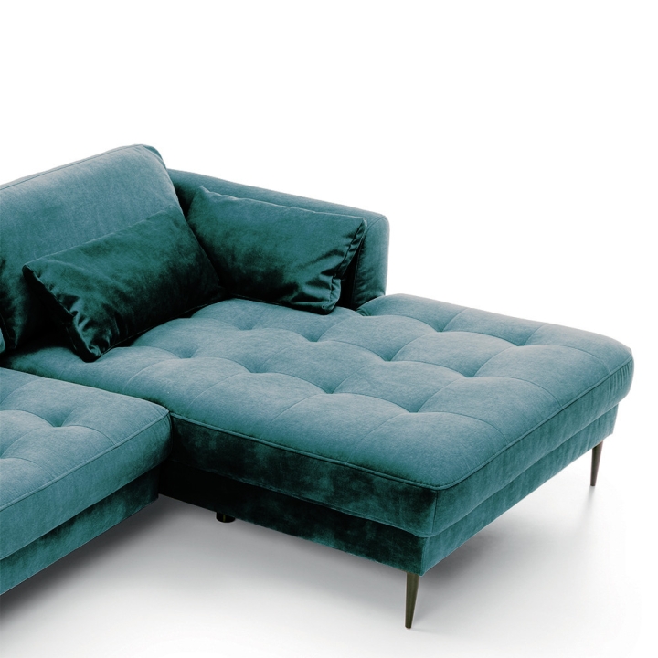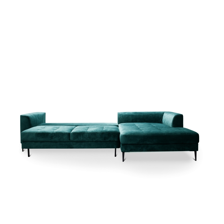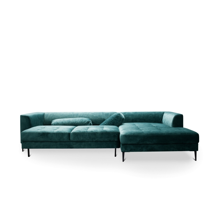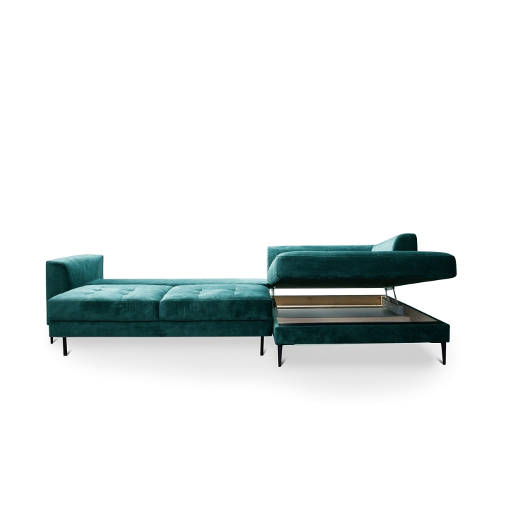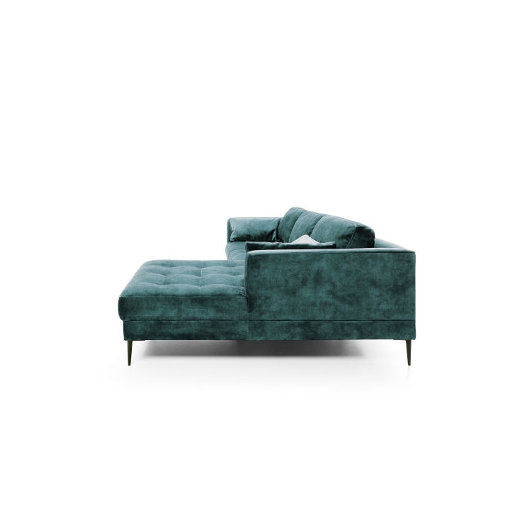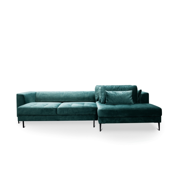 The Luzi 2DL-REC/BKcorner sofa from the Luzi collection by Etap-Sofa is an unveiling of a piece of furniture with an extremely light form, which will also add lightness to your interior. High metal legs and long straight back cushions make the furniture fit perfectly into modern, loft, industrial and glamour arrangements. The quilted seat and slightly rounded armrests make it elegant and chic. The upholstered back and low backrest make it suitable for standing in the middle of the living room. Light form and sleeping function - is it possible? Yes. The Luzi 2DL-REK/BK model combines these two functions and also has two bedding compartments. The large selection of fabrics makes it possible to match the furniture to any interior.