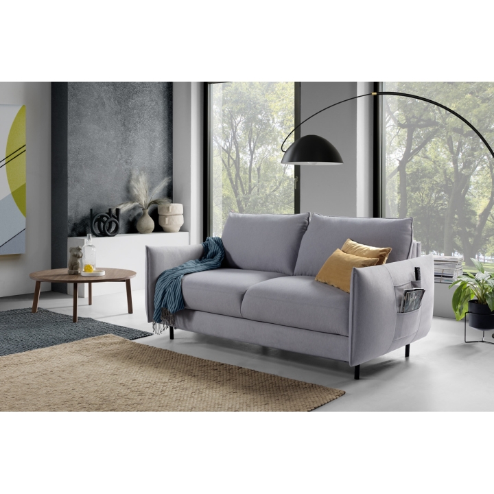 The 2F Lucca sofa by Etap Sofa is a sofa with a casual form that will find its way into any arrangement. This model is distinguished by narrow armrests with a designer shape and stitching. It is a very functional piece of furniture with a light form, which conceals a very comfortable sleeping function with a comfortable mattress. Subtle pockets placed on the side of the armrest ensure that both your remote control and other small items will always have a place. Thanks to its compact size, the Lukka sofa is ideal for a living room, guest room or study. The wide range of fabrics offered by the manufacturer makes it possible to match the furniture to any interior.