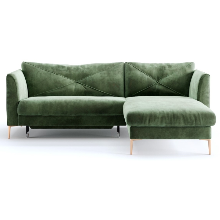 Farina is a modern upholstered corner sofa with a touch of classic. The furniture has back cushions that have decorative stitching to give the sofa elegance. Farina is a perfectly finished piece, so it can stand in the centre of a room. The corner sofa also has a sleeping function, thanks to which we gain an additional sleeping place. The furniture is also equipped with a bedding container. The stylish body is set on beautiful metal legs, which add to its tasteful character. The possibility of choosing the type and colour of upholstery allows you to select a piece of furniture that perfectly harmonises with your living room decor.