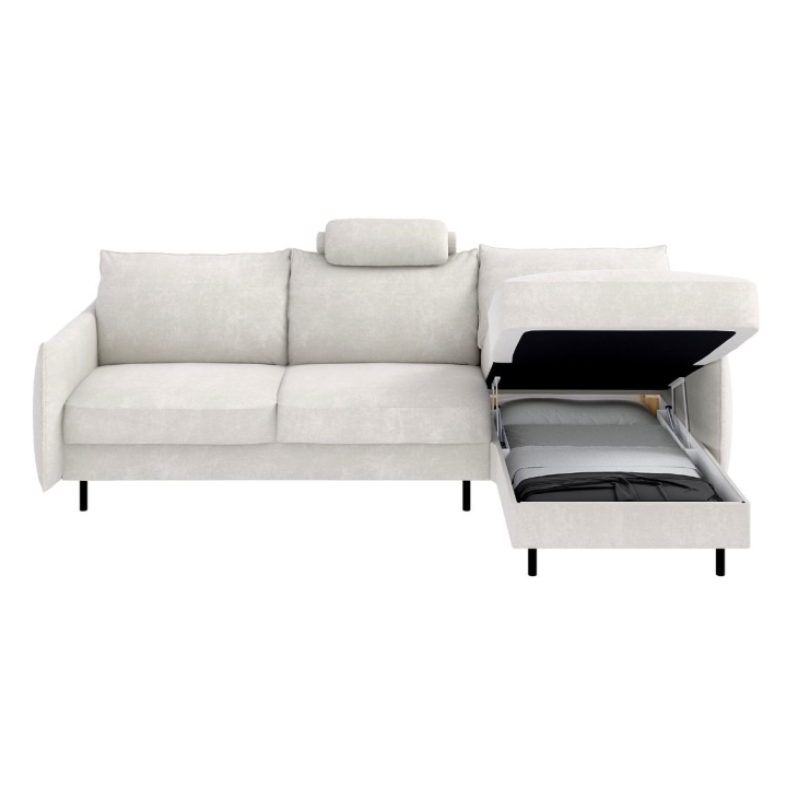The Lukka corner sofa features a bedding container located in the ottoman, allowing convenient storage of blankets, pillows, or bedding sets. This solution keeps the living space organized and ensures that all necessary items remain within easy reach. An additional advantage is the inclusion of three side pockets, perfect for small items, remote controls, or magazines.