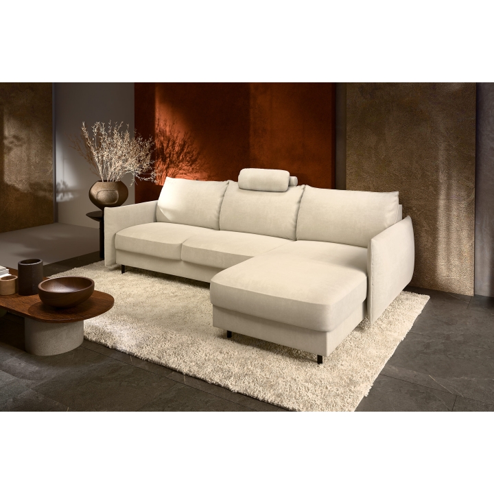 The armrests, measuring 16/69/106 cm, contribute to the sofa’s balanced proportions and enhance user comfort. The Lukka corner sofa combines solid craftsmanship with attention to detail, creating a space where you can fully relax. It is a piece that perfectly fits into contemporary interiors, providing both aesthetic appeal and everyday comfort.
