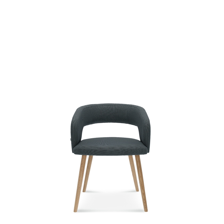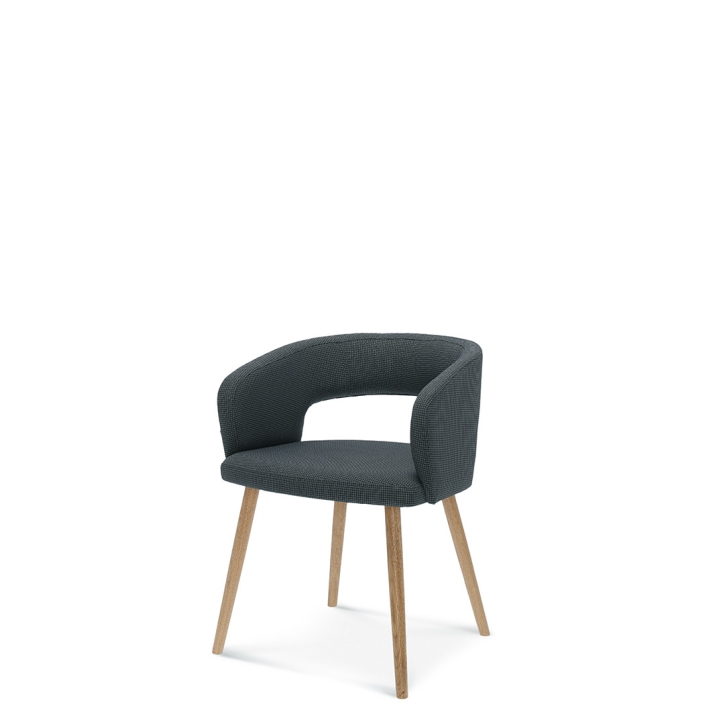 The modern model of the Cube upholstered armchair by Fameg is an ideal piece of furniture, which will change the interior design and give it a modern character. The piece of furniture is perfect for a home dining room, as well as for an office or restaurant. Cube is fully upholstered, with wooden legs made of beech or oak wood giving it lightness. Cube is a popular bucket chair that captivates with its modern look, thanks to its openwork back.
