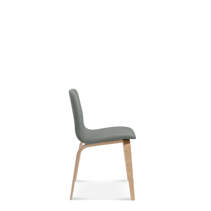 The Hips chair is a modern , stylish piece of furniturethat has an upholstered seat. The chair is perfect for modern interiors especially home dining rooms, restaurants or food courts. The furniture is entirely made of plywood. Hips is characterised by its subtle form, which will add a touch of glamour to your interior. The structure of the piece of furniture consists of a wide seat that flows smoothly into the backrest, creating an ergonomic and comfortable place to sit. The frame is made up of delicate legs, which add lightness to the whole. The Hips collection also comes in other versions : without upholstery and fully upholstered.