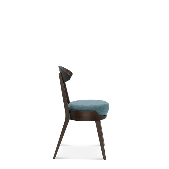 The Uma chair by the Fameg manufacturer is a model as if from the 1960s. This unique piece of furniture captivates with its designer look. What surprises most is the interestingly designed seat and elliptical backrest. There is a cushion in the middle of the seat, which not only emphasises the modern character of the chair, but also ensures a high level of seating comfort. The Uma chair is made of bent beech wood to last as long as possible in your interior design. You can choose from a variety of wood colourings and many types of fabric, which will certainly enable you to create the perfect piece of furniture.