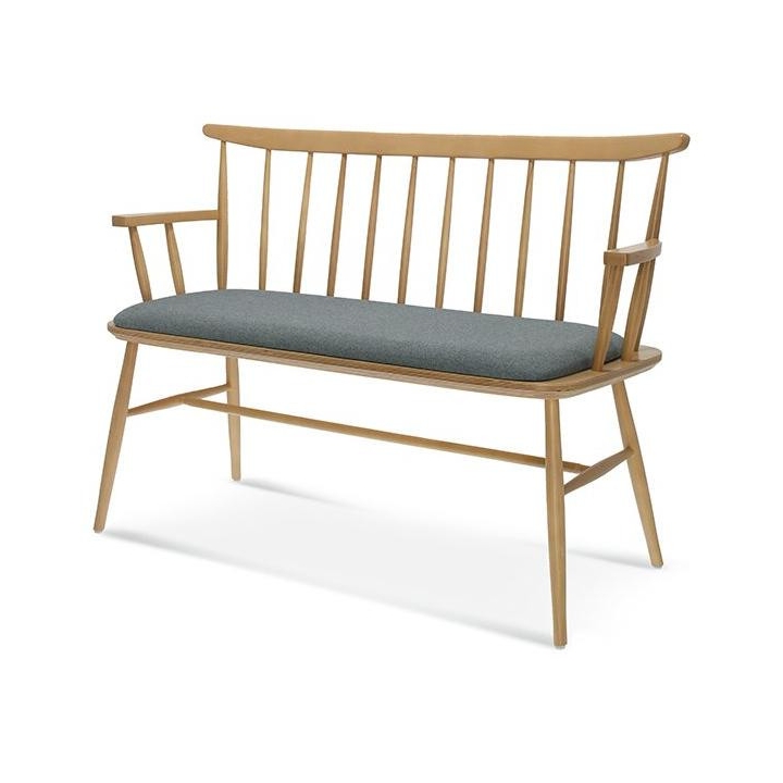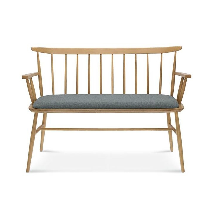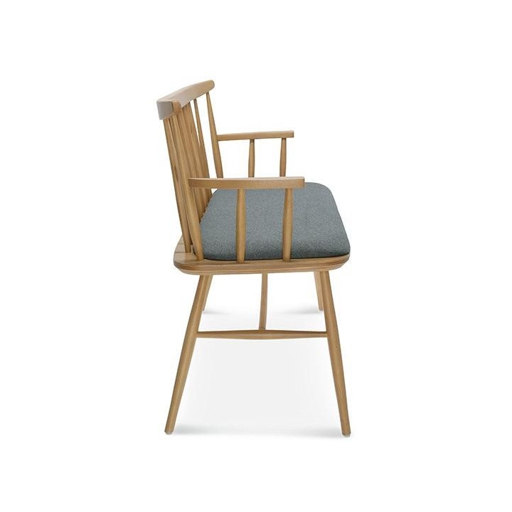 Wand is a stylish sofa designed in a fashionable vintage style. Comfort in use is ensured by the contoured design, the slender hand-cut backrest tiers and the comfortable upholstered seat. The furniture is distinguished by its slender form and legs, which have a delicate spindle shape. Thanks to the wide range of wood colours, you can match the furniture to almost any arrangement. The Wand sofa charms with its universal character and timeless elegance.