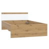 The youth bed from the Arkina collection by Forte is a wide and minimalist in form bed with headrest. The 125 centimetre wide frame in light oak with a white insert in the headrest are visually light, bright and modern. The Arkina youth bed, with the option to purchase the capacious Arkina bedding drawer, is a great solution for a teenager's room. Its length, as long as 210 centimetres, allows the bed to be a purchase for years to come. The youth bed by Forte consists of a frame and headrest as well as instructions and parts necessary for self-assembly. The timeless colours of wood combined with white suit all styles of décor, whether classic or more modern.