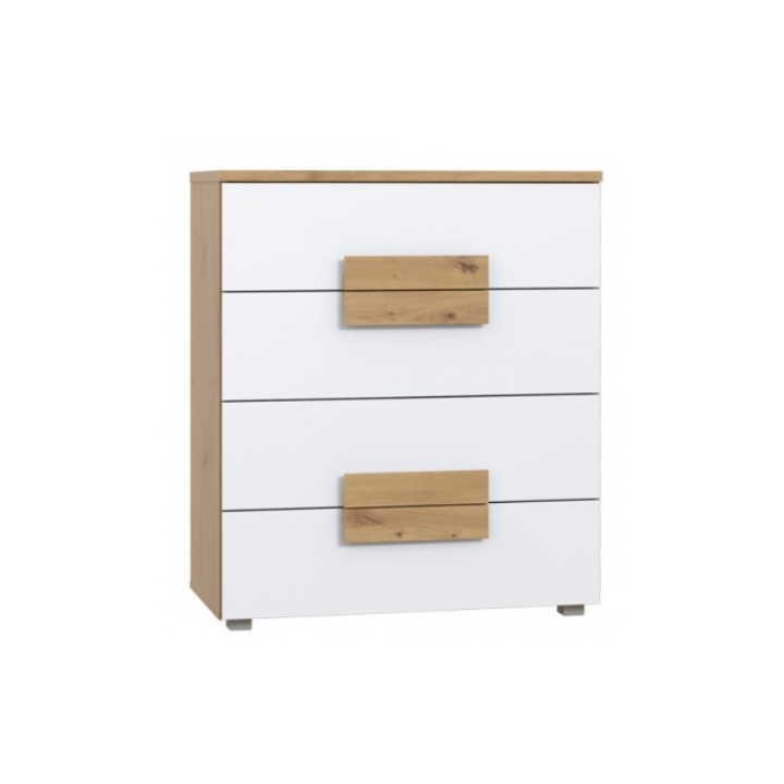 The Arkinachest of drawers from the Arkina collection by Forte is a comfortable, shapely piece of furniture that can perform many functions in a teenager's room. A complement to the desk? Bedside table? An independent chest of drawers for trinkets? A stand for an aquarium or multimedia equipment? The chest of drawers is a versatile piece of furniture that can be used flexibly depending on your needs. The four capacious drawers of the Arkinachest of drawers from Forte with a maximum load capacity of 3 kg each and a solid top with a load capacity of up to 20 kg allow you to store many things and cleverly organise your clutter. Situated on four legs, the chest of drawers is consistent with the rest of the Arkina collection, providing a modern and youthful style in a teenager's bedroom.