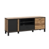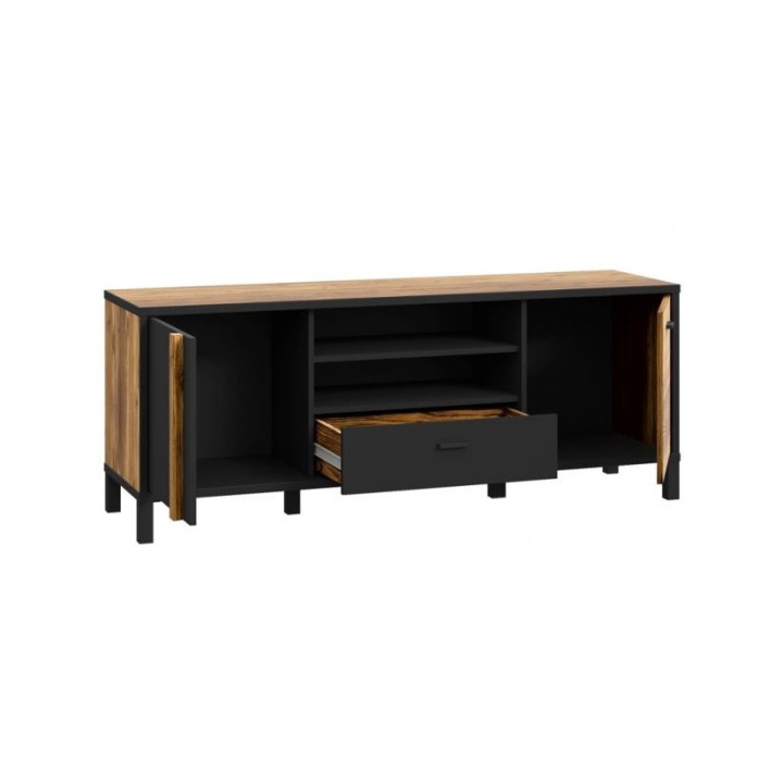 When choosing a TV cabinet, we often wonder what it should be like? Is it worth investing in a piece of furniture when we can install the receiver directly on the wall? The answer to these questions is an unequivocal yes! This model from the Hayato collection perfectly fits in with the latest trends - the austere, ornament-free design combines the enduring beauty of Alpine Spruce wood and neutral, elegant black. The designers made sure that the cabinet is a combination of aesthetics and functionality. There is a drawer, two shelves in the central part, and space on the sides for things you want to put behind the door. The stability of the furniture is guaranteed by 6 pairs of 10 cm high legs, making cleaning easy and comfortable. The cabinet will look great in a living room or living room with an industrial character, where simplicity and minimalism are important. Whether you want to place a t.v. or your favourite trinkets on it, it will provide an interesting and unique design element for your home.
