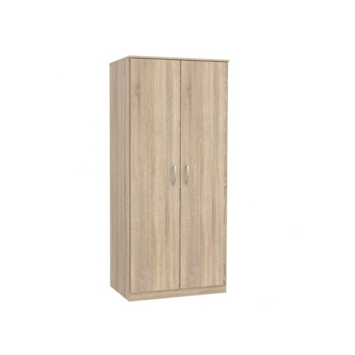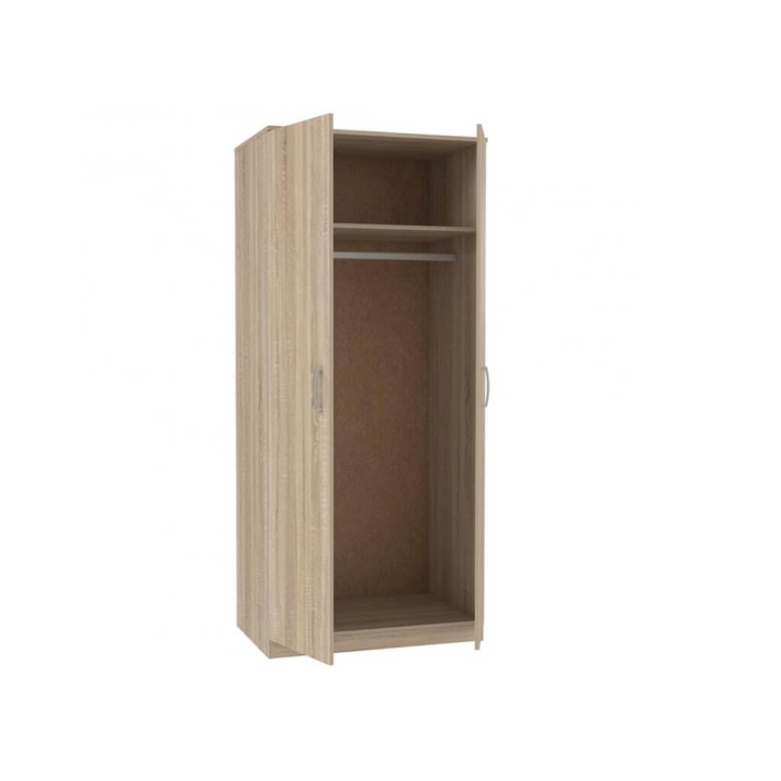 A modern wardrobe from the Forquick collection by Forte will easily accommodate all clothes and necessary personal items. Forquick model will fit perfectly into a modern or Scandinavian interior. The furniture delights with its natural finish and timeless functionality. This piece of furniture is equipped with a hanger rail and a capacious shelf. Such a design means that you can easily organise your belongings, arranging them according to your preferences, and each item will remain in impeccable condition. What draws attention is the stylish colouring! The bright Sonoma oak-inspired décor will add a fresh touch to your arrangement. The handles, on the other hand, are made of aluminium-look plastic, so they look stunning while remaining easy to use.