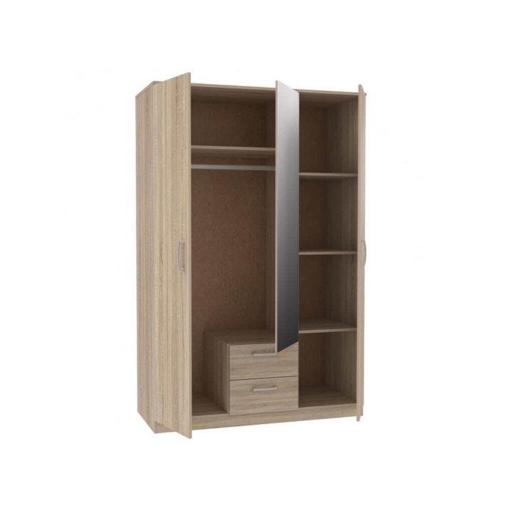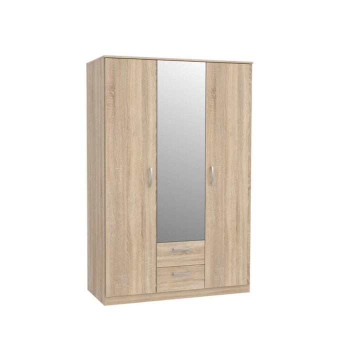 The three-door wardrobe from the Forquick collection is a model combining classic design with timeless functionality! The wardrobe is characterised by muted colours and minimalist design, which makes the Forquick wardrobe look great in most arrangements. The wardrobe has a very capacious and perfectly thought-out interior. It features four practical shelves, a spacious compartment with a hanger bar, and two drawers. Such a structure will help you organise space for storing a large number of clothes, shoes or accessories. The product's advantage is an elegant mirror placed on the front! This element will be perfect for a night out, but will also add a touch of glamour and optically enlarge the room. In the Forquick collection you will also find many stylish proposals for the living room, living room and bedroom!