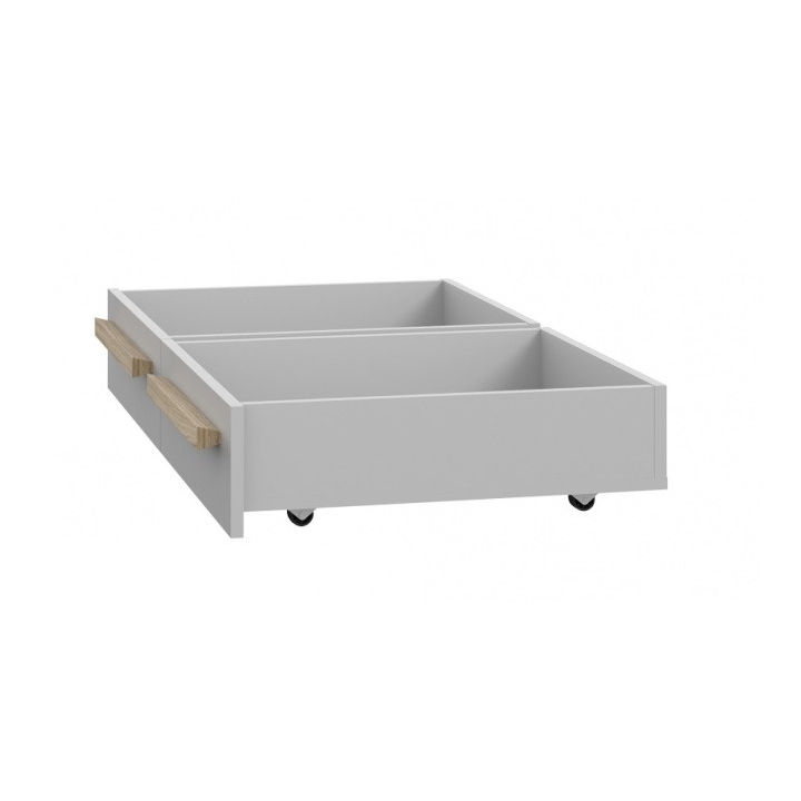 The Surfinio collection is youth furniture from the manufacturer Forte. The presented bedside cabinet from the Surfinio collection by Forte is a complementary element to the bed from the same collection. The drawer is made of durable furniture board, which is characterised by high durability and aesthetic appearance. The colour scheme is a combination of two fashionable colours - grey and natural oak wood. Such a combination blends perfectly with other elements of the bedroom furnishings and, what is important, gives the interior a light and modern character. The drawer is perfect for storing bedding, children's toys and everyday objects and many other things.