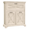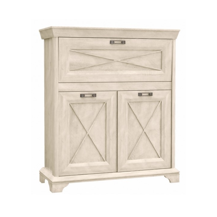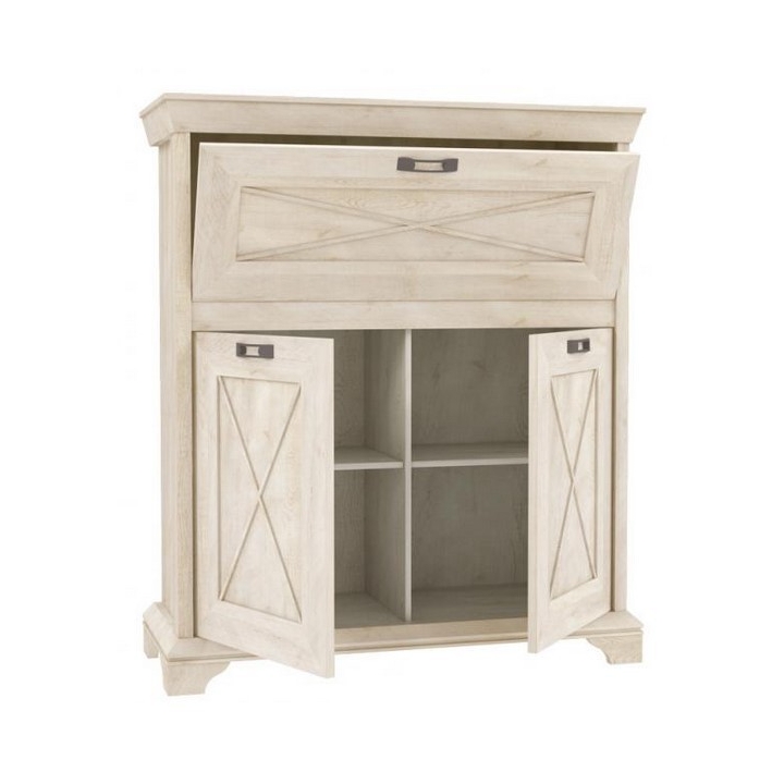 The stylish chest of drawers from the Kashmir collection is a unique Provençal-style piece of furniture that will bring elegance and lightness to your interior. The bright, creamy colour is due to a unique finish in white pine decor. The KSMK43 dresser with a bar from Forte is a practical piece of furniture for a living room or dining room. Under the bar, located in the upper part of the furniture, we have a cabinet with four spacious niches separated by shelves and a partition. This allows for optimum organisation of items and accessories for table decoration, tablecloths, cutlery or spirits, for example. The chest of drawers with bar can also be used for storing documents, office and decorative accessories. The chest of drawers has metal handles ora stylised legs and a crown. In addition to fulfilling its basic function, the furniture is a real ornament of the room.