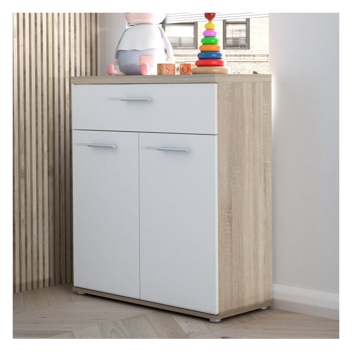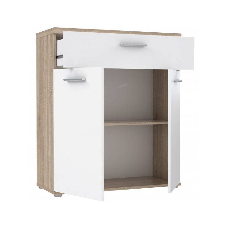 The Winnie collection chest of drawers model WNK431 by Forte is a light and timeless piece of furniture for a child's room, teenager's room or a hallway. A shallow cabinet with a shelf and a practical drawer for small items will allow you to organise books, documents, small electronics or shoes or keys, if you decide to place it in the hallway. The Winnie chest of drawers from Forte will be perfect for small spaces thanks to its sleek form. The subdued colour scheme makes the piece of furniture fit into many arrangements, it does not overwhelm the interior with excessive design but adds lightness and harmony.