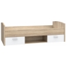 The single youth bed model WNL09 from the Winnie collection of youth furniture by Forte is a modern proposal for a child's or teenager's room. The bed is distinguished by a gently rounded low headrest and footrest, and a functional base with a recess and two drawers. Additional storage under the bed box allows you to keep your child's bedroom tidy, storing trinkets, toys and bedding. The bed has a muted colour scheme, which is characteristic of the entire Winnie collection. Made of furniture board, the furniture comes with a frame, bed box and drawers, as well as assembly parts with instructions. A frame and mattress must be purchased separately for the bed. The sleeping surface is 90 x 200.
