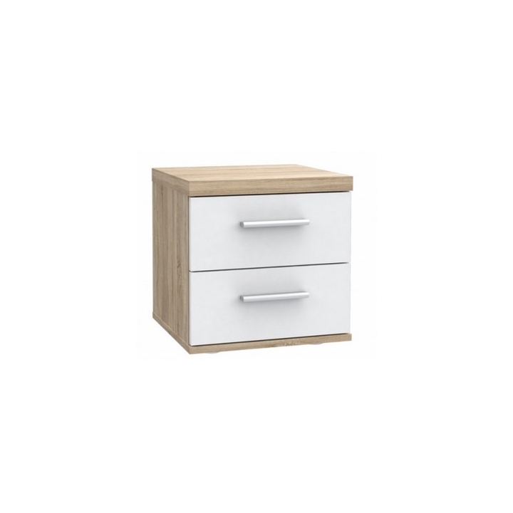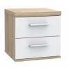 Bedside cabinet model WNK08 from the Winnie collection by Forte is a colour toned, classic cabinet that will help to keep the bedside tidy. Designed to match the Winnie youth bed with drawers and the Winnie collection of children's furniture from Forte. The cabinet has two white drawers surrounded by a light oak body. The top of the cabinet is a practical space for installing a bedside lamp. Forget about books or small electronics on the floor These handy little things will be hidden in the drawers with white fronts and modern metal handles in aluminium.