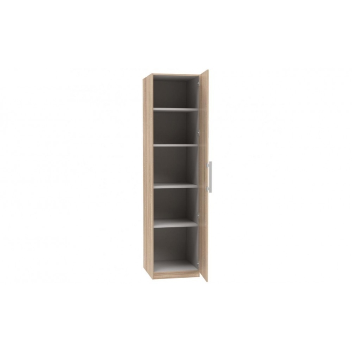 The wardrobe wardrobe from the Cadixo Forquick collection from furniture manufacturer Forte is a practical and timeless piece of furniture, which will make it easier to organise your wardrobe. Thanks to its minimalist design and streamlined pattern, the Cadixo Forquick wardrobe wardrobe will fit into any interior design. Five spacious recesses separated by solid shelves offer ample storage space for clothes, shoes or textiles. The simple, regular shape with a minimalist, aluminium-coloured linear handle gives the entire unit a modern feel. It was made of high-quality furniture board and finished in a warm oak colour.