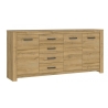 The elegant and modern Havanna chest of drawers from the manufacturer Forte is a capacious piece of furniture for the living room or dining room. Made in the décor of aged oak wood, with thickened slats, it visually creates a massive, solid and stylish whole. Three cabinets with shelves in the centre and a central section with four drawers for small items will keep your household accessories organised. The black plastic handles contrast with the rest of the furniture, giving it an industrial look. The Havanna chest of drawers from Forte will work perfectly in stylish, elegant and warm interiors as well as in modern and loft spaces.