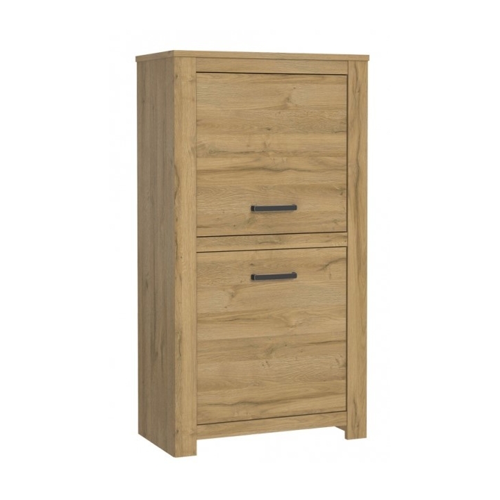 The elegant and modern Havanna cabinet model right HVNS411R from the manufacturer Forte is a practical and unusual piece of furniture for the living room or dining room. The cabinet in the form of a low post offers four capacious storage niches, separated by shelves and hidden behind fronts in the colour of aged oak. Bold slats create an optically solid and stylish frame around the fronts. The black plastic handles contrast with the rest of the furniture, giving it an industrial feel. The Havanna cabinet from Forte will be perfect for stylish, elegant and warm interiors as well as modern and loft spaces.