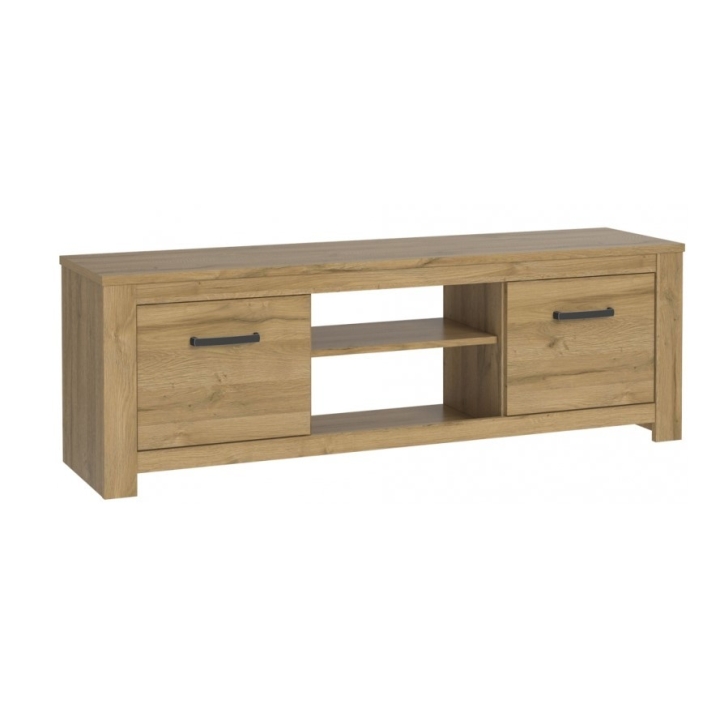 Spacious and elegant RTV cabinet from the Havanna collection by Forte is a functional piece of furniture for a multimedia corner. The modern and stylish RTV cabinet has two recesses in the central part of the furniture for connecting decoders and cleverly hiding cables, as well as two cabinets for storing small electronics, such as remote controls, chargers, pads or organising CD collections. The RTV cabinet from the Havanna collection, model HVNT131 from Forte, is made in an aged oak wood décor, and with thickened slats, characteristic of the entire collection, it creates an optically massive, solid and stylish whole. The black plastic handles contrast with the rest of the furniture, giving it an industrial feel. The Havanna RTV cabinet by Forte will be perfect for stylish, elegant and warm interiors as well as modern and loft spaces.