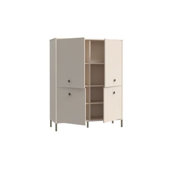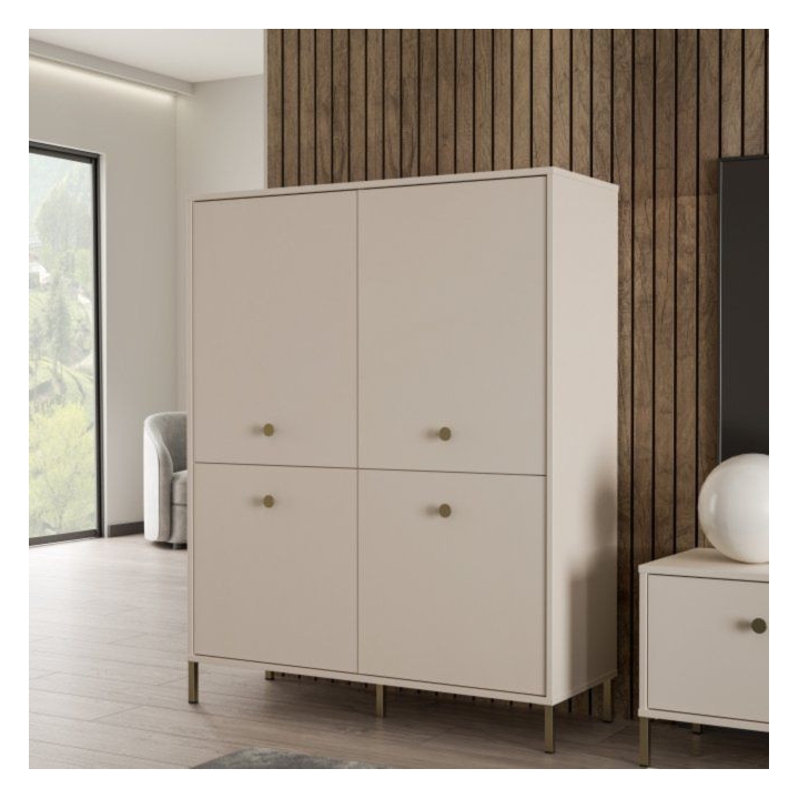 Are you looking for a stylish and functional storage solution for your interior? The Salvatrice chest of drawers from the Salvatrice collection is the perfect option! With four lockable cabinets, it will provide you with adequate space for your linen, wardrobe, documents and other accessories. Thanks to the silent closing system, opening and closing is extremely smooth and noiseless. The metal handles and legs in matt gold add an elegant touch, matching any interior. The sturdiness of the piece of furniture is ensured by the metal construction and the four slab shelves, which can accommodate many of the things you need. This chest of drawers will not only emphasise the unique character of your interior, but also provide the necessary functionality and aesthetics.
