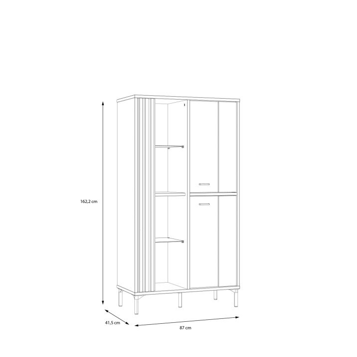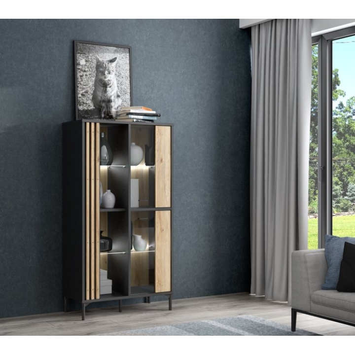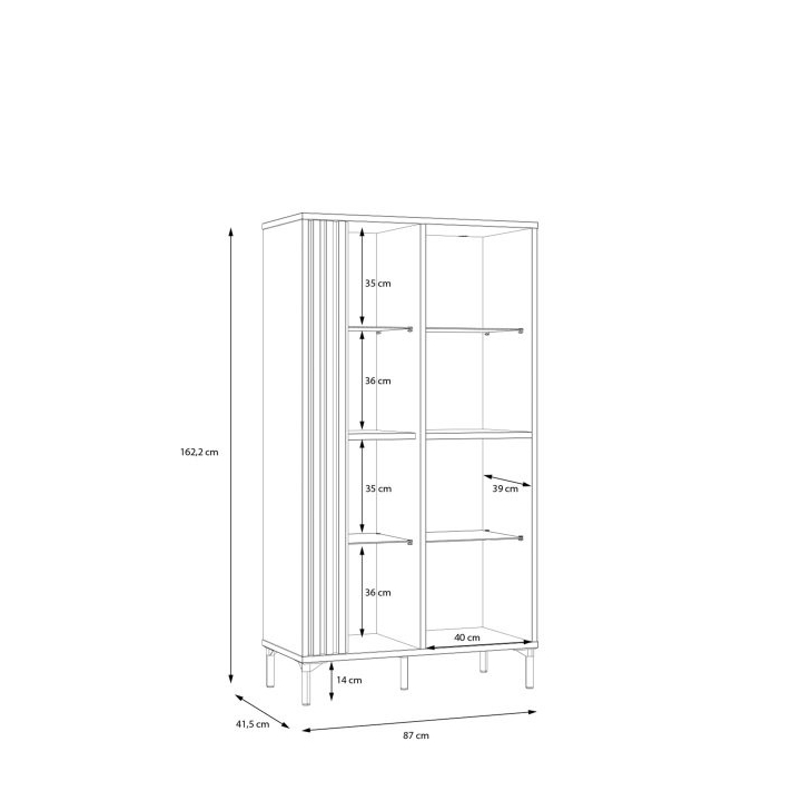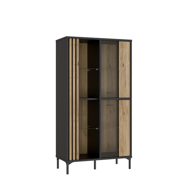 The Joakimis showcase from the Joakimis collection by Forte is an elegant and functional piece of furniture measuring 87 cm wide, 162.2 cm high and 41.5 cm deep, ideal for displaying favourite books, souvenirs and decorations. Made in a combination of decors: Mauvella oak and Black, the display cabinet looks stylish and modern. It perfectly matches other elements from the same collection, creating a coherent and harmonious living room arrangement. Thanks to its unique design and practical features, the interior will gain character and elegance, while providing adequate space for storing and displaying items.