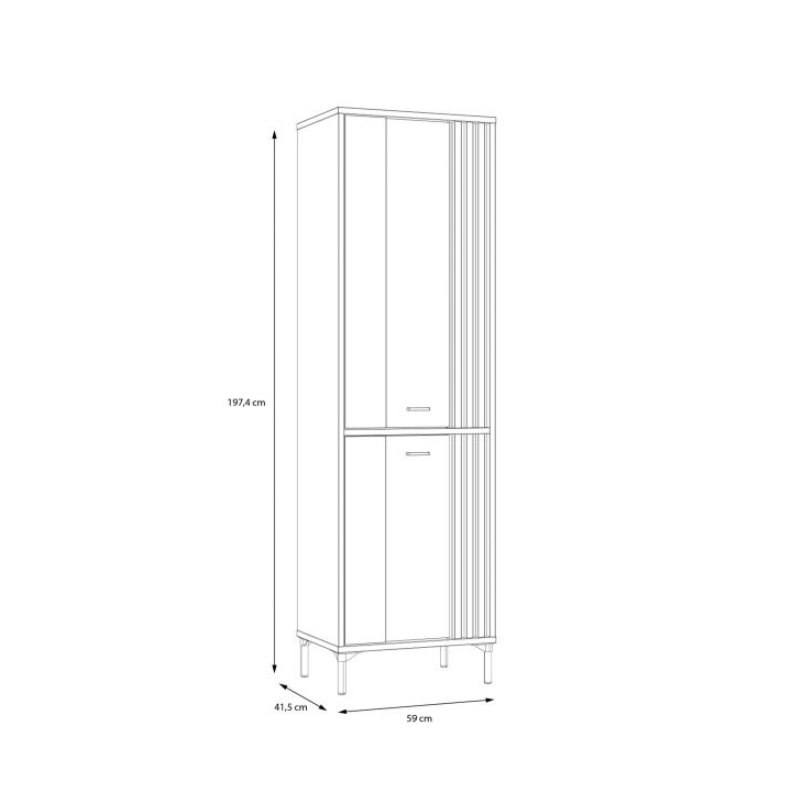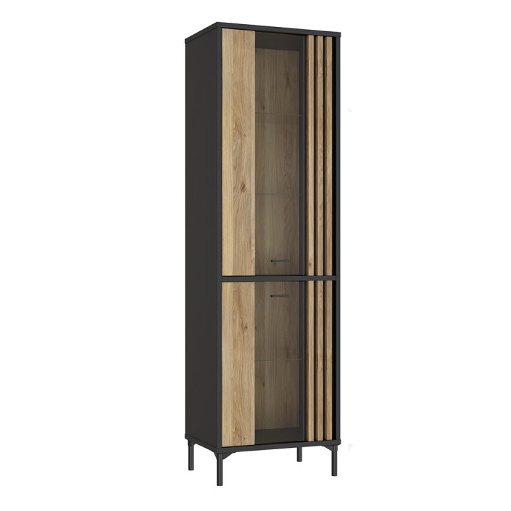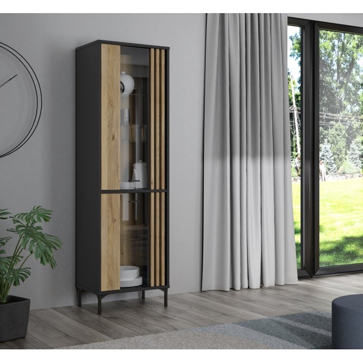 The JOAKIMIS collection showcase is a designer piece of furniture measuring 59 cm wide, 197.4 cm high and 41.5 cm deep, created to display your favourite books, souvenirs and decorations. Its unique design in a combination of decors: Mauvella Oak and Black adds elegance and modernity to any interior. Combined with other pieces from the same collection, the display cabinet creates a harmonious living room arrangement, giving it a unique character. It will give your items the right place to display them and give your interior a touch of elegance and style. It fits perfectly into a variety of décor styles, adding charm and functionality to any room.
