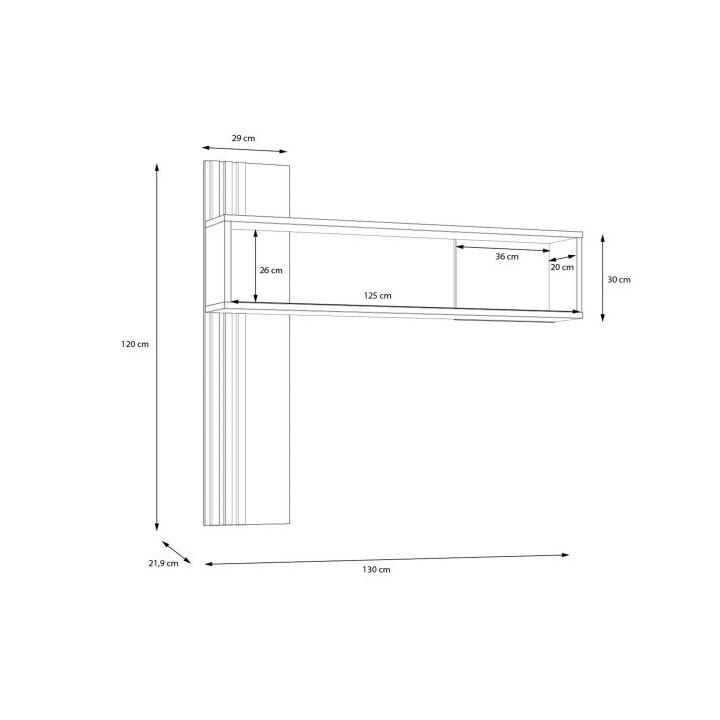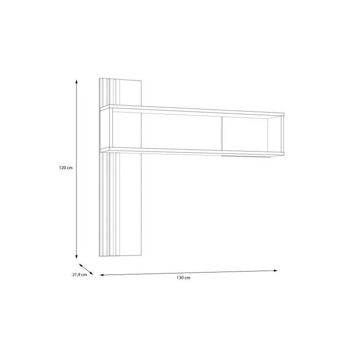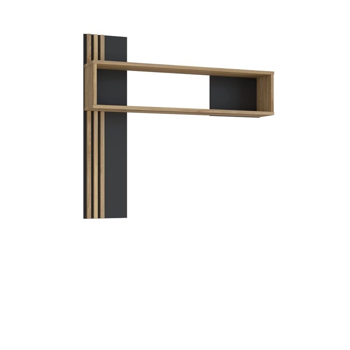 The hanging shelf from the JOAKIMIS collection is the perfect addition to an industrial style living room arrangement, measuring 130 cm wide, 120 cm high and 21.9 cm deep. Made in Mauvella Oak and Black décor , the shelf adds character and elegance to the interior. It is ideal for displaying favourite literary works, photographs, decorations and travel mementos, adding a cosy and personal touch to the room. The shelf looks great above a chest of drawers or RTV cabinet from the same collection, creating a cohesive arrangement. A stylish accent is the lamella inserts in the decorative back panel, which give the furniture a unique look and character.