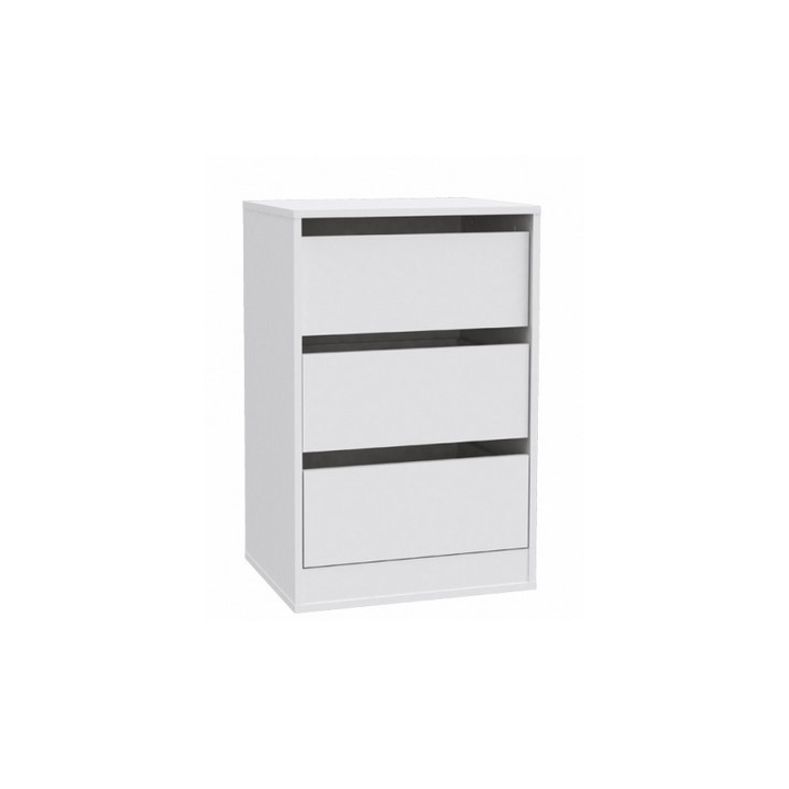 The inner wardrobe chest model SNWK83 from the Snow collection from the manufacturer Forte is a functional, lightweight chest of drawers, thanks to which you will optimise your wardrobe. The chest of drawers is dedicated to the inside of the Snow wardrobe, but not only. Ask your salesperson and make sure that this inner chest of drawers fits your wardrobe model. This inner chest of drawers has three capacious drawers. You can accommodate clothes, documents, small clothing accessories such as scarves, accessories, underwear or electronics (tablets, cables, batteries, speakers, discs) or cosmetics.