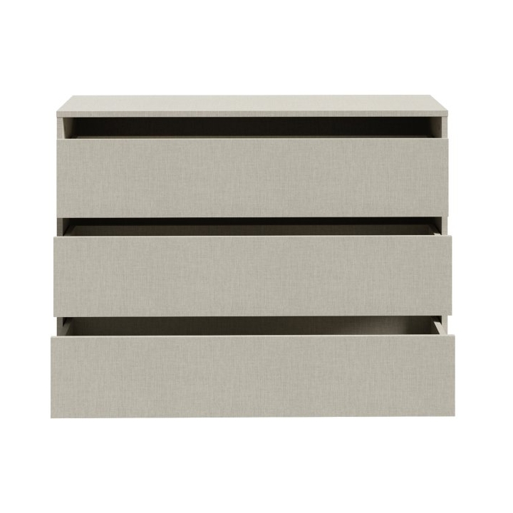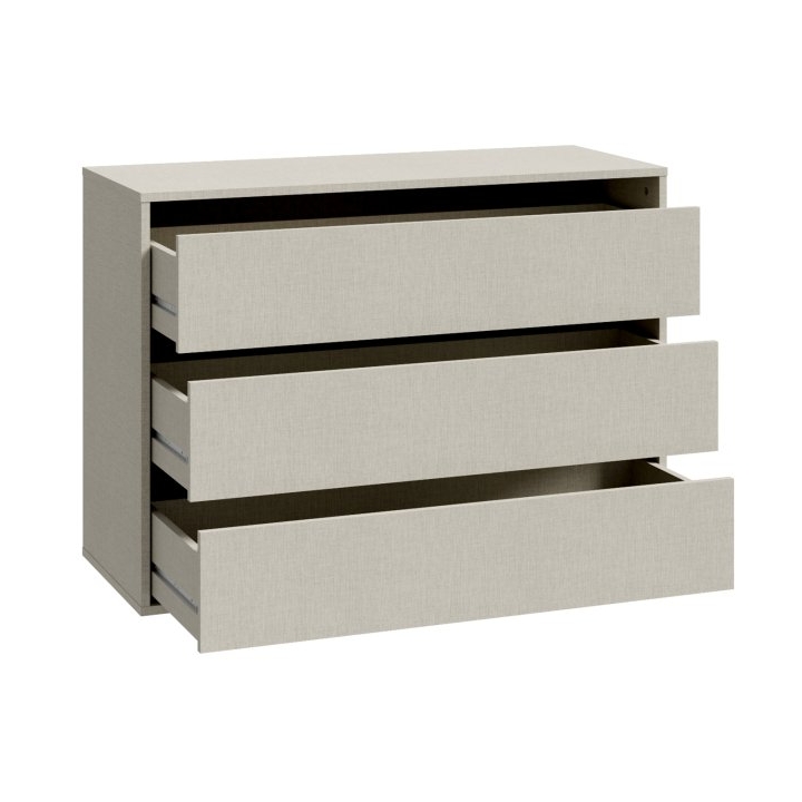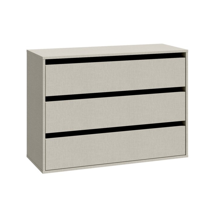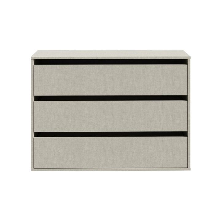 The dimensions of the chest of drawers are 99 cm wide, 70.6 cm high and 39.6 cm deep, making it easy to place even in narrow wardrobes or smaller sliding wardrobe sections. The grey colour with a fabric-like texture gives it a modern look that blends harmoniously with different interior styles.