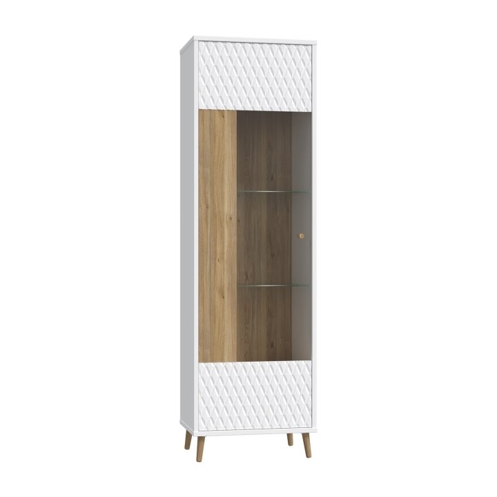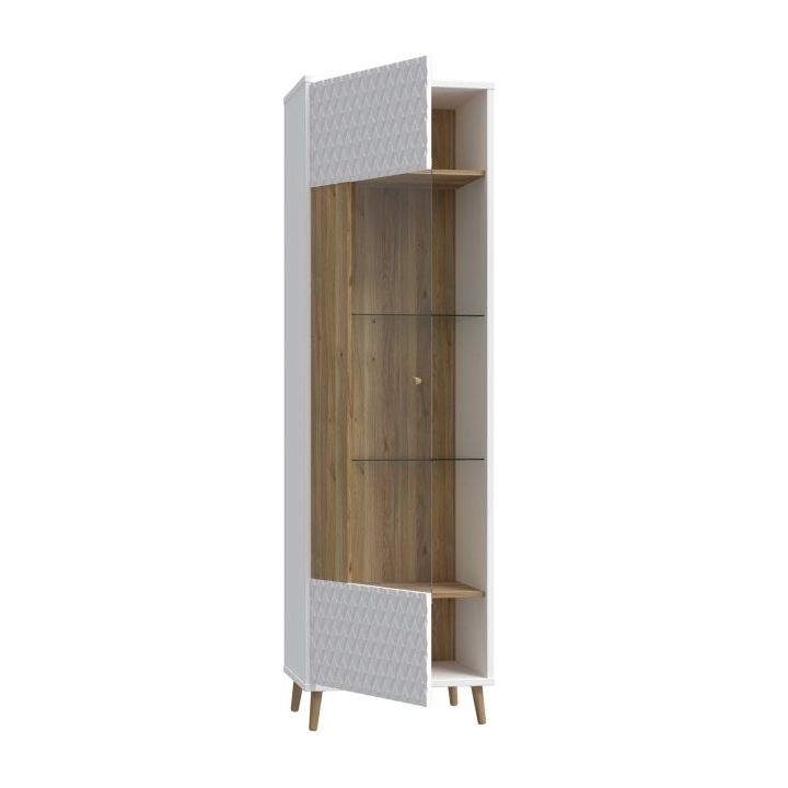 The Aksana AKNV711-M992single-door L/P vitrine from manufacturer Forte is a modern Scandinavian-style piece of furniture that would be perfect for a living room, dining room or living room. It is 59.8 cm wide, 41.3 cm deep and 199.8 cm high, making it a tall, slender solution for storage and display.