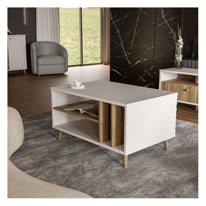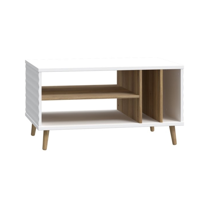 The Aksana coffee table CFTT5204-M992 from the manufacturer Forte is a stylish piece of furniture that fits perfectly into modern and Scandinavian interior design. It is 90 cm wide, 60 cm deep and 49.4 cm high, making it the perfect place for a cup of coffee, books or decorations in the living room.