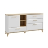 The 170 cm WRDK233L-M982 Wardiolchest of drawers from manufacturer Forte is the perfect choice for those who appreciate Scandinavian style and minimalist design. Its dimensions - 169.7 cm wide, 41.3 cm deep and 87.2 cm high - make the chest of drawers fit perfectly into the living room space, while offering plenty of storage space.