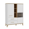 The white MDFfronts work perfectly with the artisan oak accents, adding warmth and a natural look to the chest of drawers. The matte finish of the fronts and the body emphasises the modern, minimalist design. The 12 cm high wooden legs make it easy to keep the underneath of the furniture clean and add lightness to the whole structure.