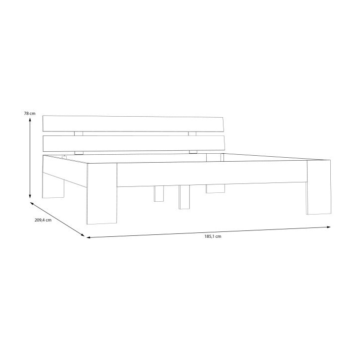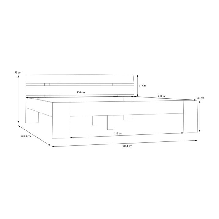 The headrest, 185.1 cm wide, 78 cm high and 6 cm deep, adds a distinctive character to the whole. The design allows for a mattress thickness of 10 to 26 cm.