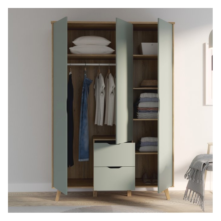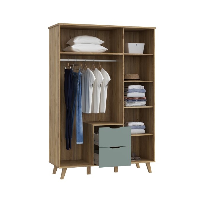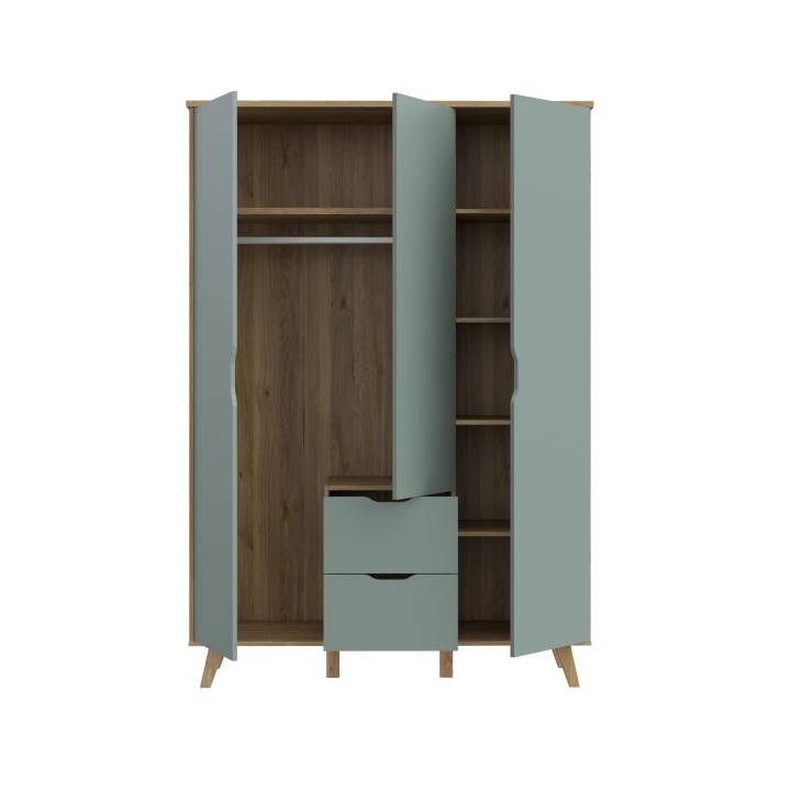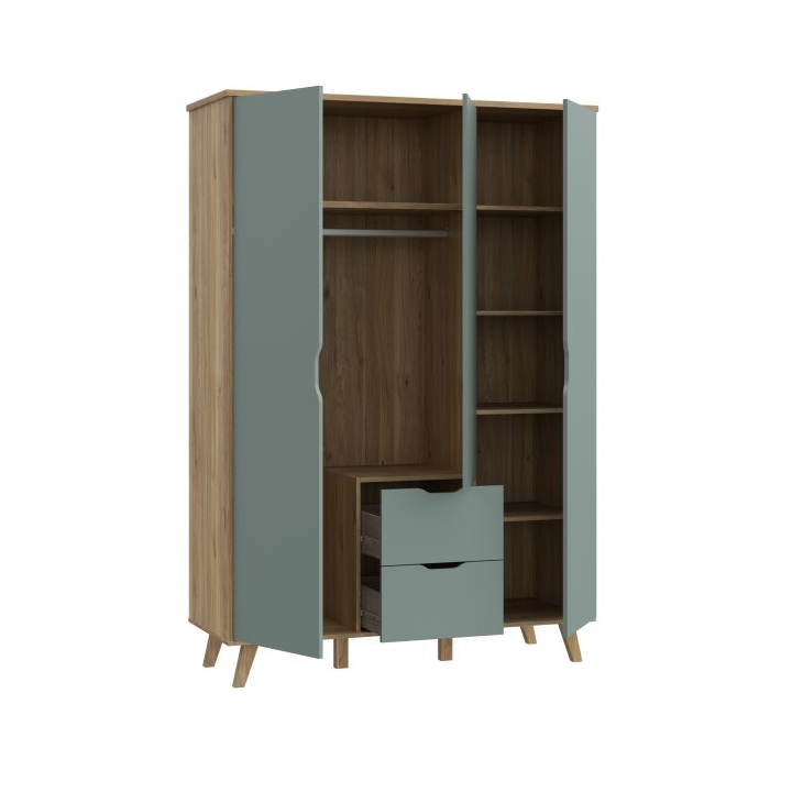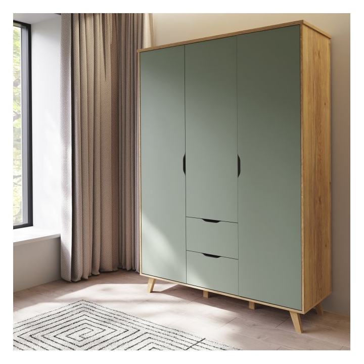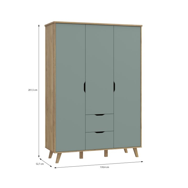 The VNKS832-M801 Vankka Forte w ardrobe, measuring 139.4 x 201.5 x 52.7 cm, is a capacious and stylish piece of furniture that will be perfect for a bedroom, wardrobe, youth room or hallway. Its modern design in shades of green and oak will give your interior a unique character, while providing great comfort. The wardrobe has been made of high-quality chipboard, which guarantees durability and an aesthetically pleasing appearance.