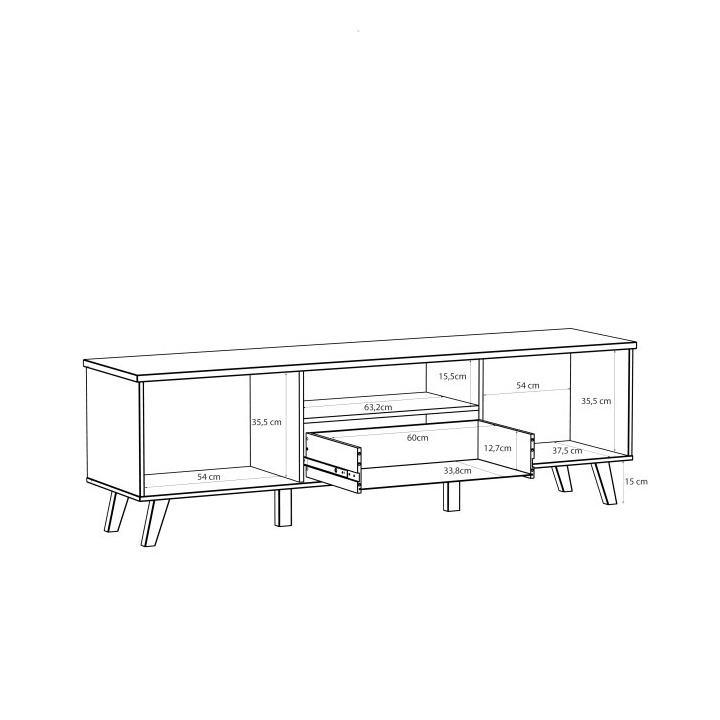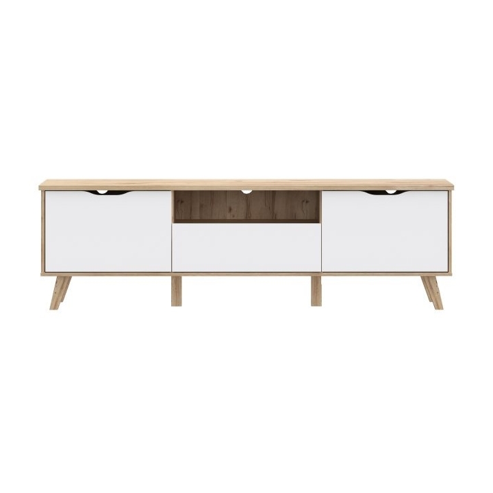 With a width of 179.1 cm, a height of 54.3 cm and a depth of 42 cm, the cabinet allows for convenient placement of RTV equipment. The top with a load capacity of 40 kg will accommodate a TV up to 80 inches. The open shelf allows you to conveniently place a set-top box, console or soundbar, while the lockable cabinets help to hide additional accessories.