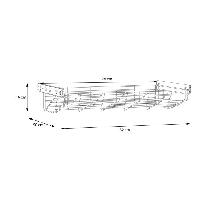 The sturdy grey metal construction ensures durability and an aesthetically pleasing appearance, while the high-quality runners ensure smooth and quiet operation. The basket measures 82 cm x 16 cm x 50 cm, making it suitable for many wardrobe models, offering optimum capacity for different types of footwear. Its clever design avoids clutter and makes it easy to segregate shoes, which will be appreciated by those who care about a tidy space.