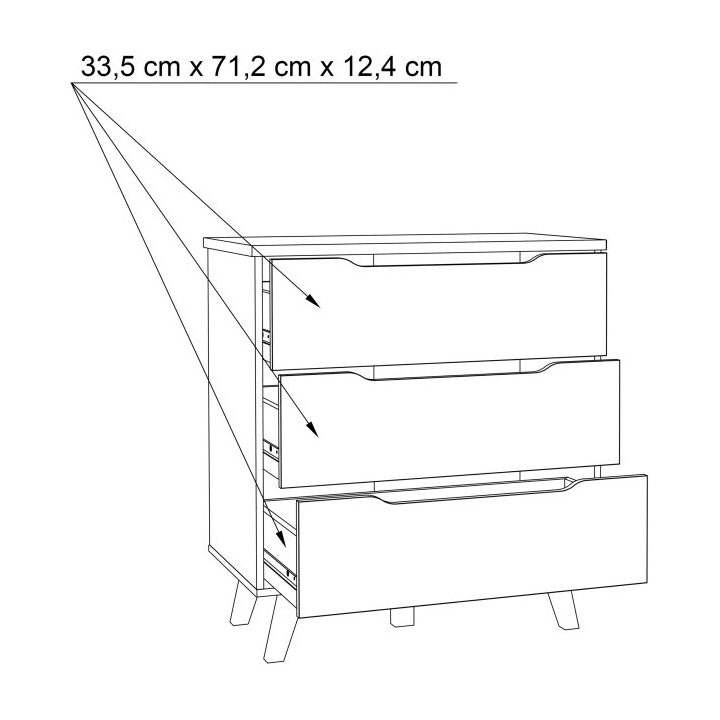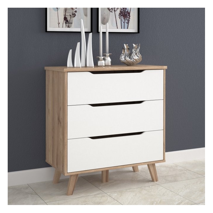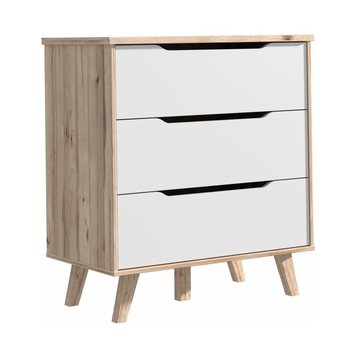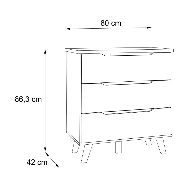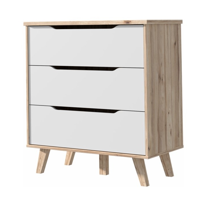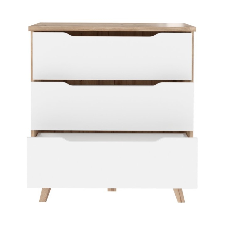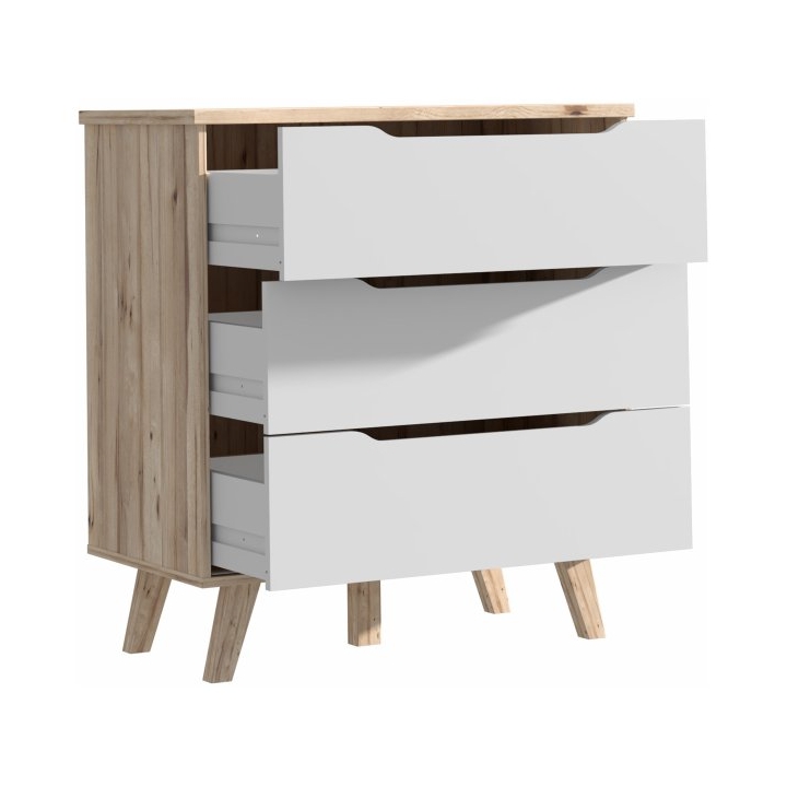 The FINVNKK212-L25 Vankka Forte chest ofdrawers is a combination of oak and white decor that will fit into a variety of interiors, from the living room to the bedroom to the teenager's room or hallway. With a width of 80 cm, a height of 86.3 cm and a depth of 42 cm,the chest of drawers offers three capacious drawers with a grooved handle providing space for clothes, accessories and other everyday items.