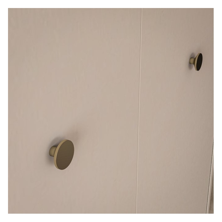 The SVTS821-U60 Salvatrice Forte wardrobe combines minimalist design with convenience. The beige body in a matt finish and gold knob-type handles give it a modern character. The high metal legs make it easy to keep things tidy underneath the furniture, while adding lightness. Behind the hinged door there is a spacious interior with shelves and a hanger bar, which allows for comfortable storage of clothes.