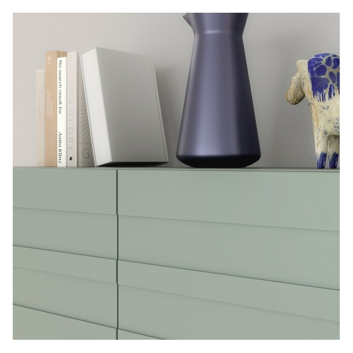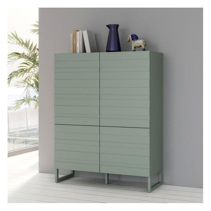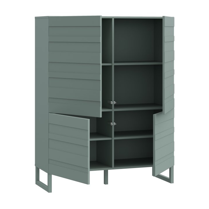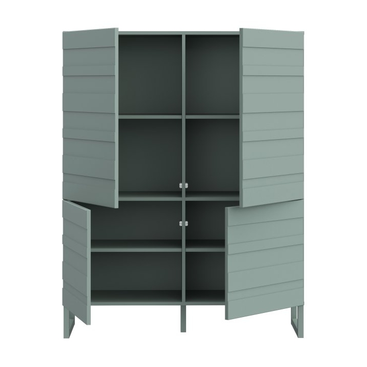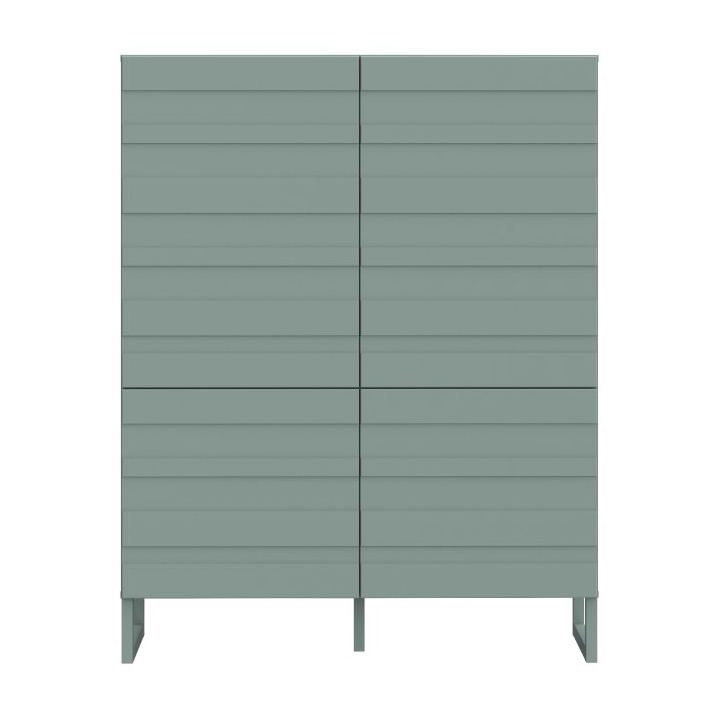 A tall chest of drawers from the Bretania BQTK422-U59 collection by the manufacturer Forte is a proposition for those who value original solutions in arrangements. Four lockable cabinets with horizontal milling on the fronts offer ample storage space, allowing you to organise clothing, documents or small accessories. The wide top will prove useful as a place for decorative objects, giving the interior an individual character. Fashionable sage colour.