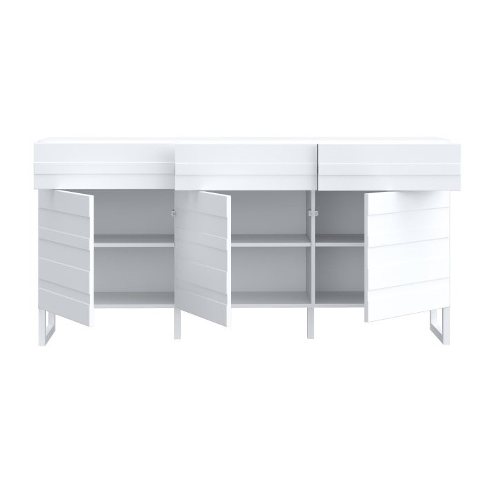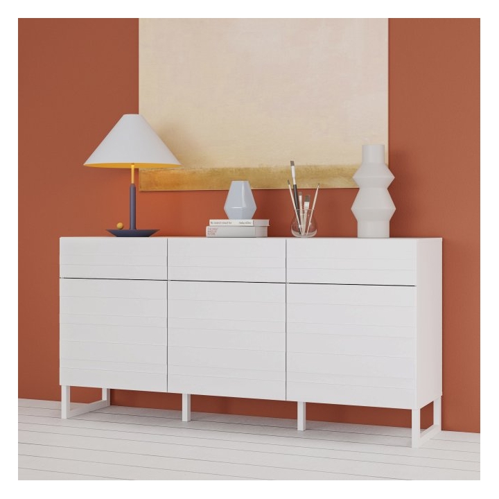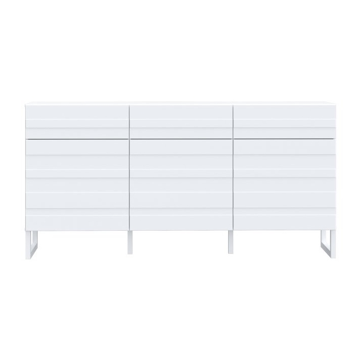 Bretania BQTK232-M731chest of drawers by Forte is a proposition for those who appreciate modern design and functional solutions. Maintained in white colouring, it rests on high legs that give it a light character. With dimensions of 164.6 cm wide, 41.3 cm deep and 82.3 cm high, the furniture offers storage space without overwhelming the interior.