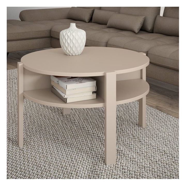 With a diameter of 74.4 cm and a height of 45.5 cm, the table is easy to assemble and use on a daily basis. The tabletop can withstand a load of up to 40 kg, allowing for stable positioning of everyday objects. The coffee table with shelf will fit perfectly into modern, minimalist and classic spaces, providing a functional piece of interior design.