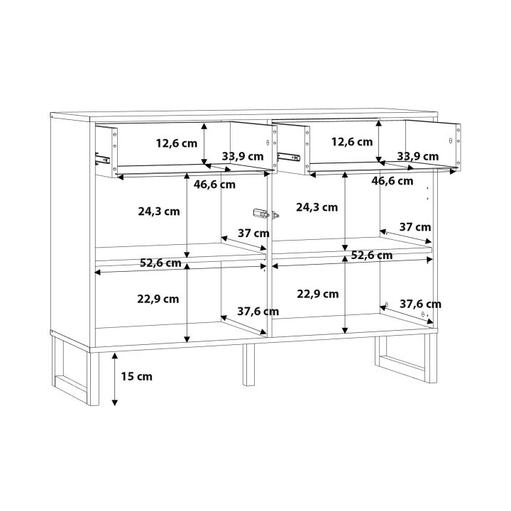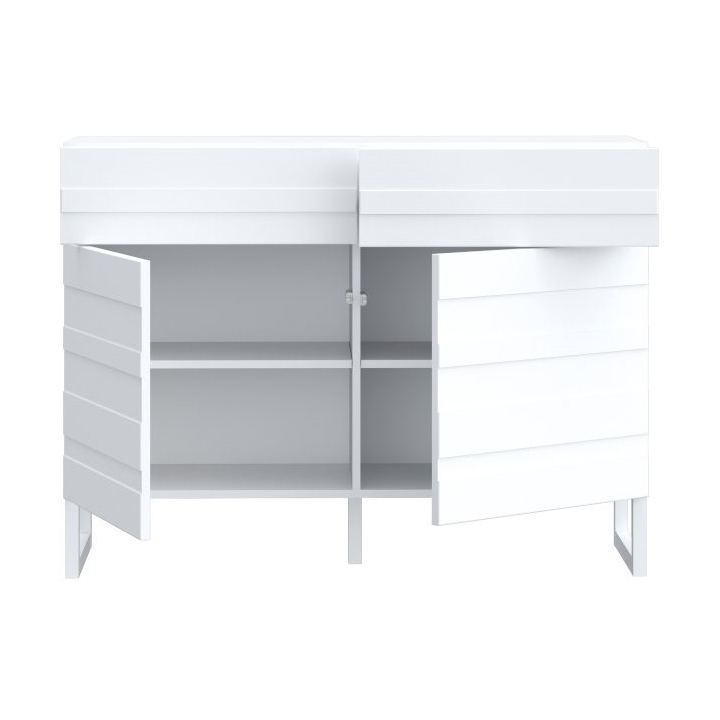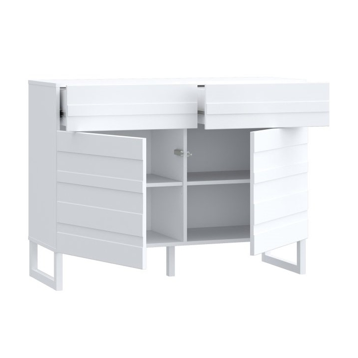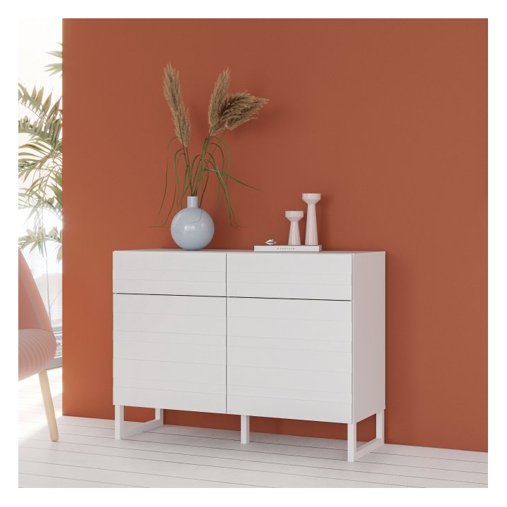 The furniture is equipped with two capacious drawers and two lockable cabinets, allowing you to organise clothes, documents and other essential items. The smooth top is the ideal place to display decorations, photo frames or lamps. The push-to-open system eliminates the need for handles, emphasising the minimalist nature of the dresser and making everyday use easier.