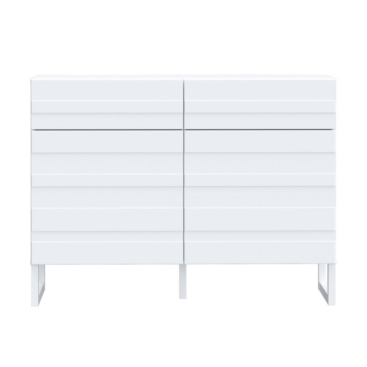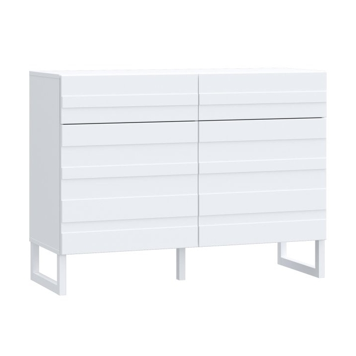 Bretania BQTK222-M731 chest of drawers from Forte is an elegant proposal in classic white, which brings freshness and lightness to the interior. The subtle horizontal milling on the fronts gives the unit expressiveness, breaking the uniform colour scheme and creating a three-dimensional effect. The light colouring of the furniture makes it fit in perfectly with various design styles - from classic to modern. With a width of 110 cm, a height of 82.2 cm and a depth of 41.3 cm, the design provides both storage space and the ability to style the interior. The chest of drawers will work well in the bedroom, living room and also in the study.