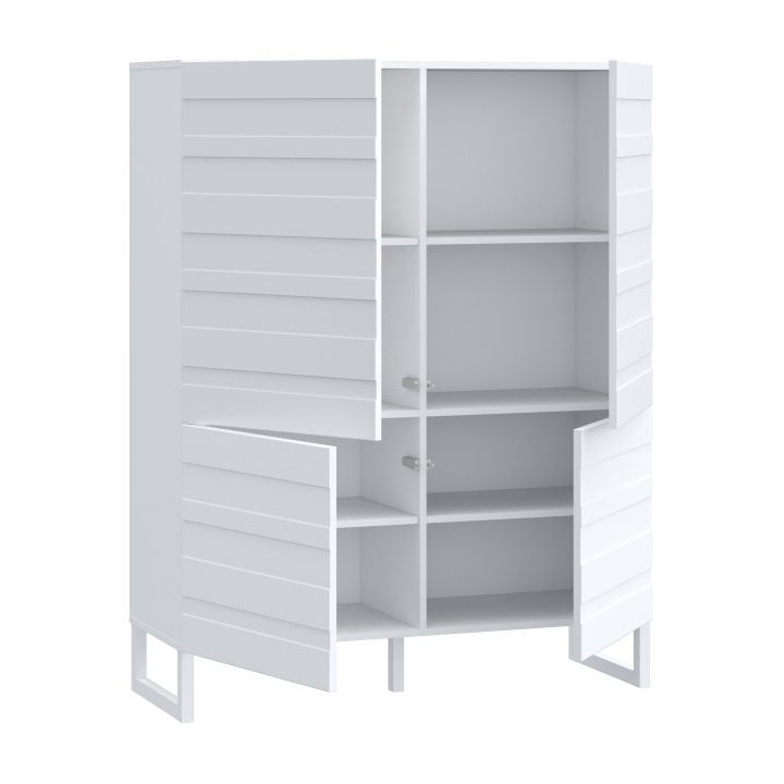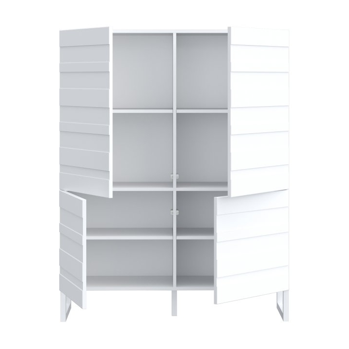Bretania BQTK422-M731 chest of drawers from the manufacturer Forte with a high construction in white is a proposal for those looking for original solutions in interior design. Four lockable cabinets with horizontal milling on the fronts offer space for convenient storage of clothes, documents and various accessories. The wide top makes it possible to display decorations, giving the room an individual character.