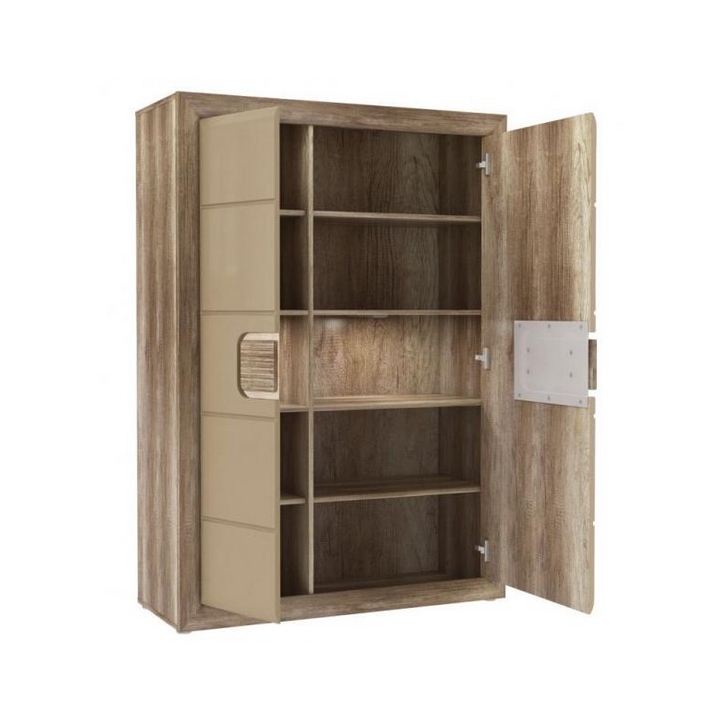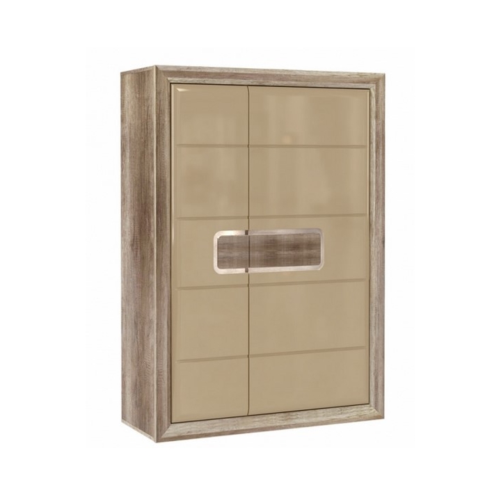 Capacious, two-door wardrobe from the Tiziano collection in the colour of antique oak with imitation wood grain, with beige décor on the fronts, which give the appropriate elegance. Its universal character makes the wardrobe fit perfectly into any interior. It will work successfully in both the bedroom and the living room. Decorative fretwork accentuates the segmented structure of the furniture and catches the eye. The large interior capacity makes the wardrobe perfect as a wardrobe. The furniture was made of high quality furniture board, thanks to which it will certainly serve for many years.