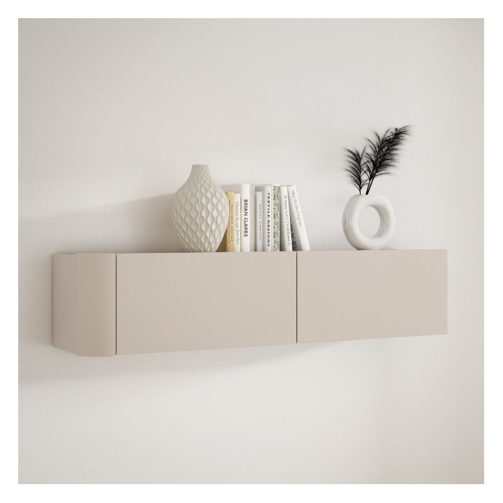 With a width of 128.6 cm, a height of 30.1 cm and a depth of 34 cm, the cabinet is suitable both as part of a furniture system and as a single decorative accent. Various colour versions such as beige, black and pink allow you to choose a variant that blends in perfectly with your interior, and the easy-to-clean surface makes it easy to keep the furniture in perfect condition.