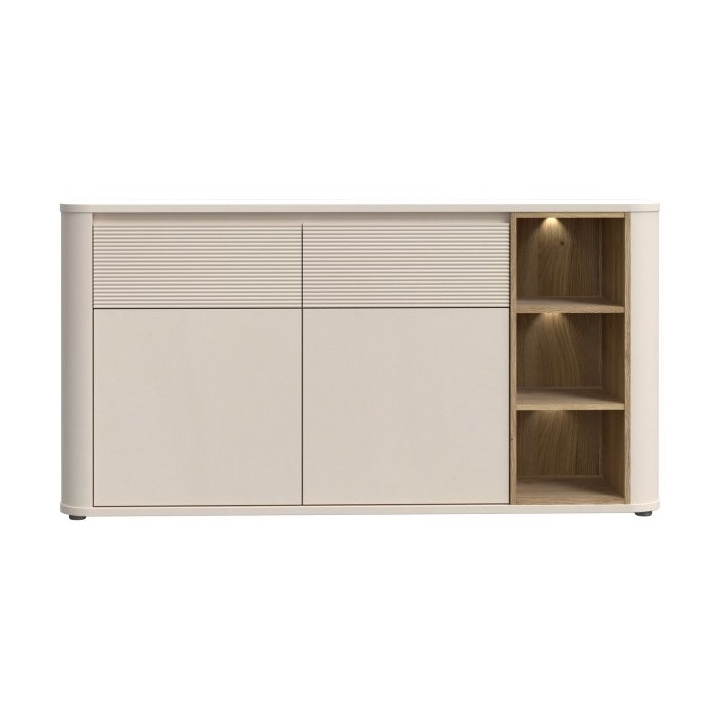 As standard, the furniture has two drawers and four shelves, while there is an option to complement the arrangement with LED lighting, which can be purchased separately. A chest of drawers with LED lighting is a great choice for those who want to add a unique atmosphere to their interior.