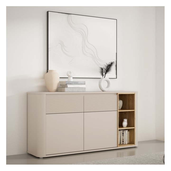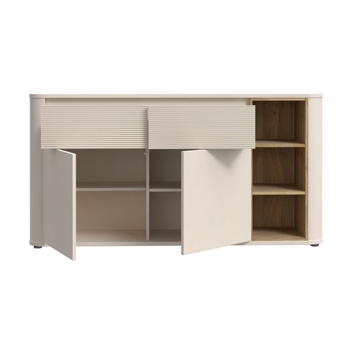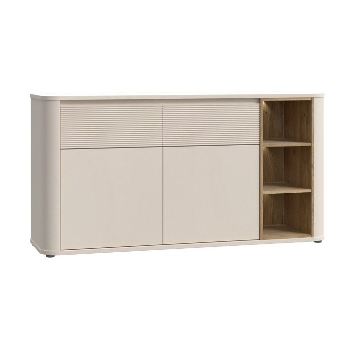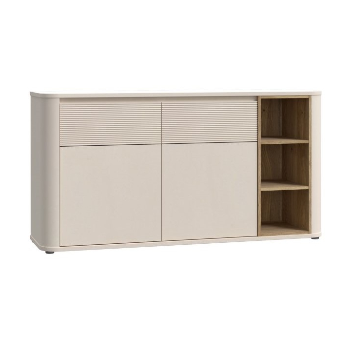 The P BTHK233 Breathtaker Fortechest of drawers is a modern piece of furniture that will fit into many interior designs. Its minimalist shape with rounded edges emphasises its modern character, while additional details, such as horizontal fluting on the fronts, give it a unique look. The chest of drawers and shelves provides convenient storage for clothes, documents or other household accessories, while the spacious top is the ideal place for decorations, books or other everyday objects.