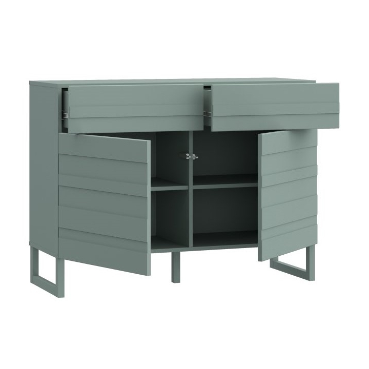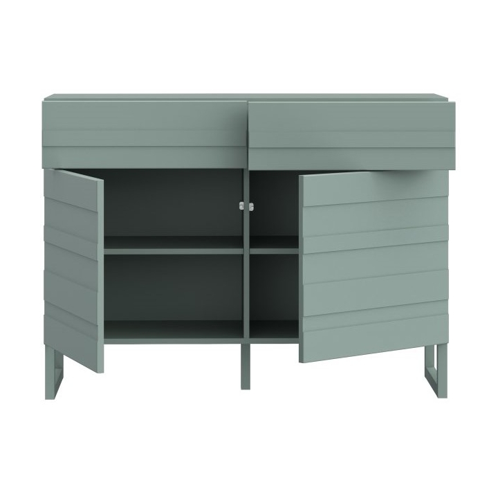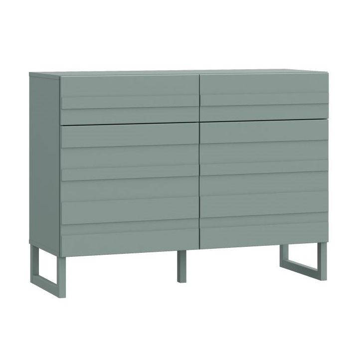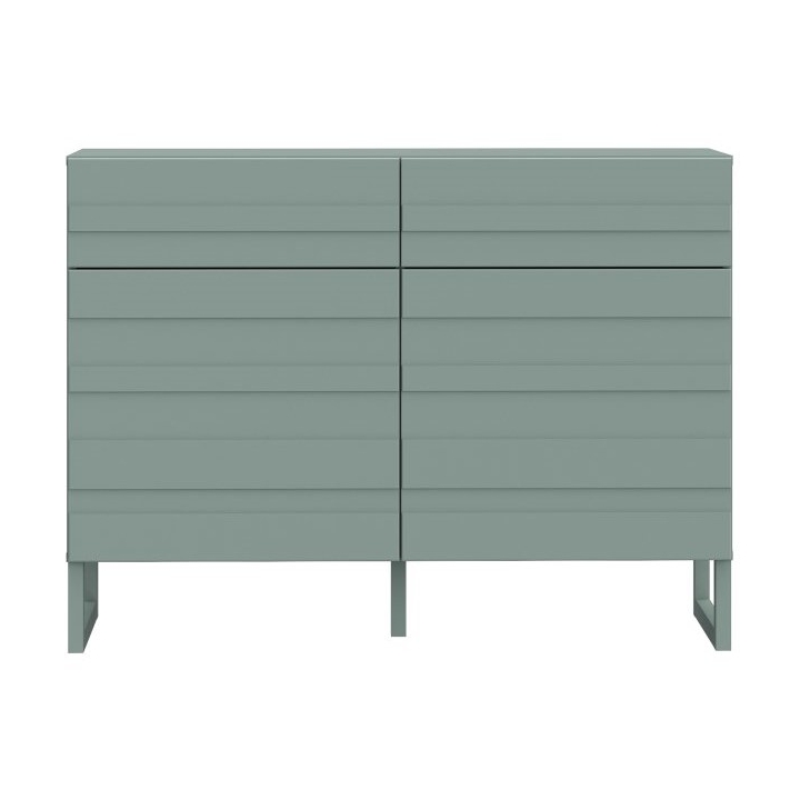 Bretania BQTK222-U59 chest of drawers from Forte is a classic solution in an original shade of sage. The fronts are decorated with horizontal milling, which gives the furniture a subtle depth and dynamics, breaking the uniform surface. The colour scheme makes the chest of drawers suitable for both classic and modern interiors, bringing lightness and freshness to the arrangement. The dimensions of 110 cm wide, 82.2 cm high and 41.3 cm deep allow for comfortable use and optimal space management. The model will prove useful in the bedroom, living room and study.